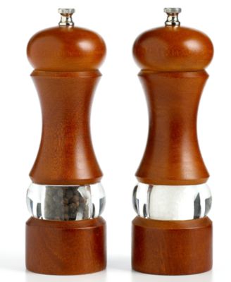 After spending some time clicking through the "Kitchen Department" of the Macy's website, I settled on a salt and pepper mill set by Martha Stewart -- the 7.5" Walnut Acrylic Salt and Pepper Mill for $29.99 plus tax and shipping. I already have positive hopes for this set because it's from the Martha Stewart Collection and there's a limited lifetime warranty should something go wrong. (I figure a "limited lifetime warranty" is just fine for something that will probably get replaced if my tastes in kitchen decor change!)